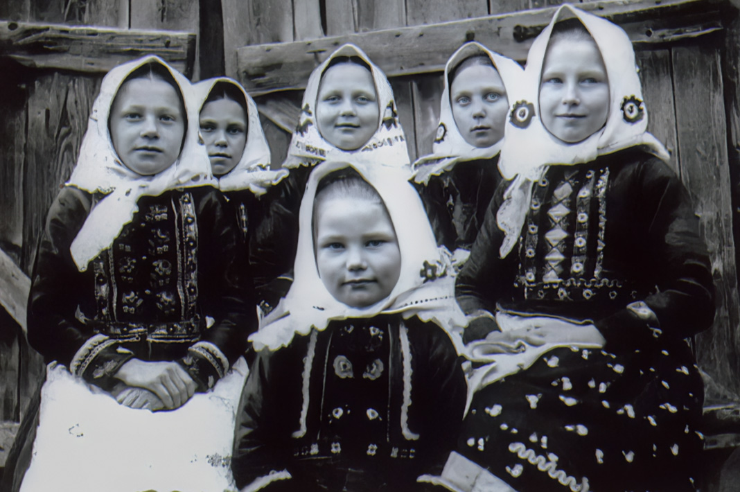 Dievčatá majú oblečený sviatočný odev. „Ľipiťinki“ – čierne tenké kabátiky sú v spodnej časti ozdobené naskladanými volánmi, vpredu a na koncoch rukávov sú našité stuhy a šujtáše – úzke šnúrky. Dievčatá majú na hlavách uviazané biele vyšívané plátenné šatky olemované čipkou.General description Tradičný odev z Horného Badína je variantom hontianskeho odevu, ktorý sa nosil aj v obciach Dolný Badín, Bzovík, Čekovce, Dolný a Horný Jalšovík, Lackov, Litava, Dolné a Horné Mladonice, Selce, Senohrad, Trpín, Uňatín a Kozí Vrbovok. Work owner Jambrichová, Anna (1948) Date of creation 1940 Municipality of origin Horný Badín, okres Krupina Recorded by Hronček, Lukáš (2000) Other responsibility Hronček, Lukáš (digitalizoval/-a)