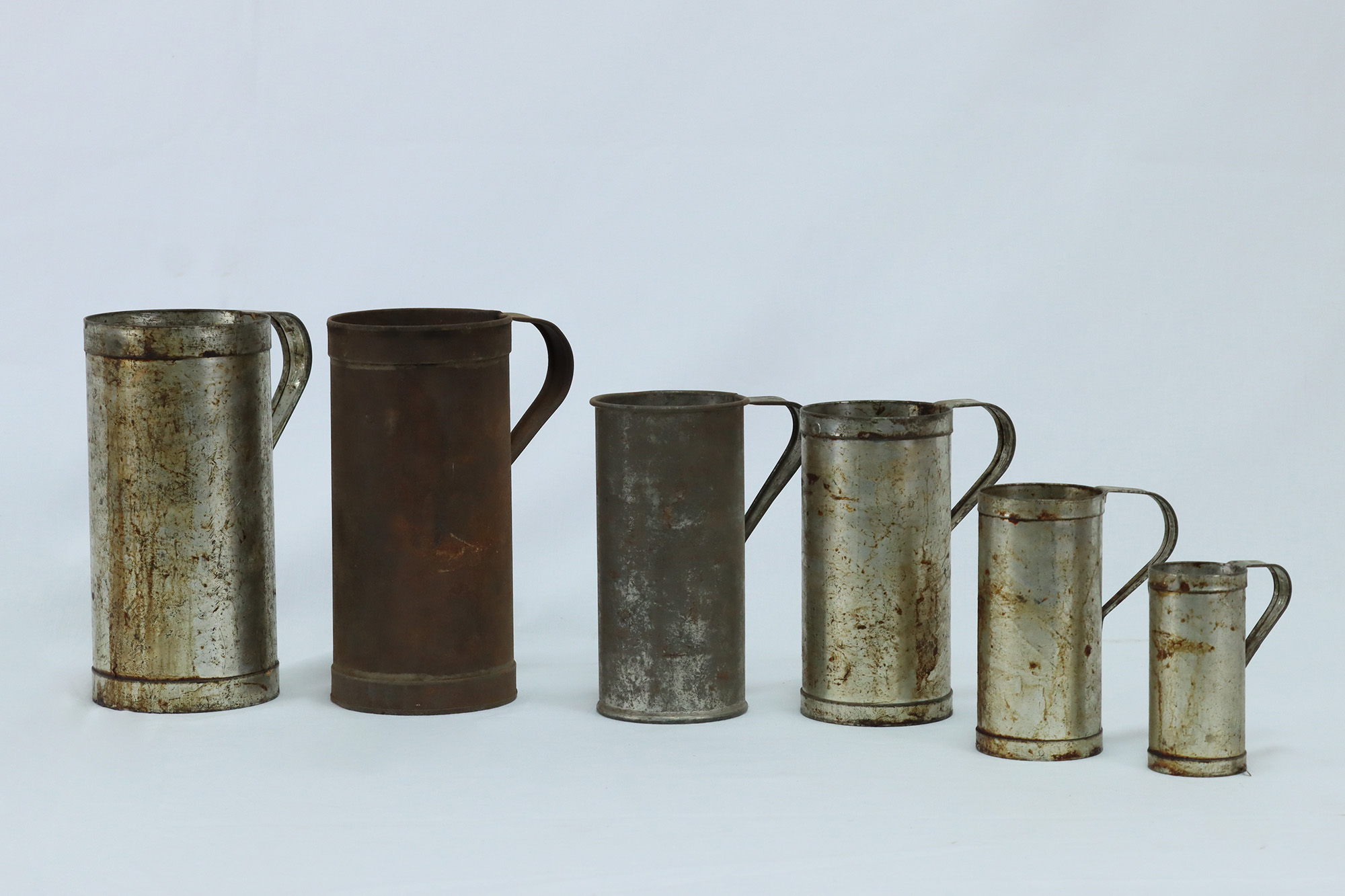 Physical descriptionNajväčšia plechová odmerka má výšku 18,5 cm, priemer otvoru je 9 cm, najmenšia má výšku 9 cm, priemer otvoru je 4 cm.
