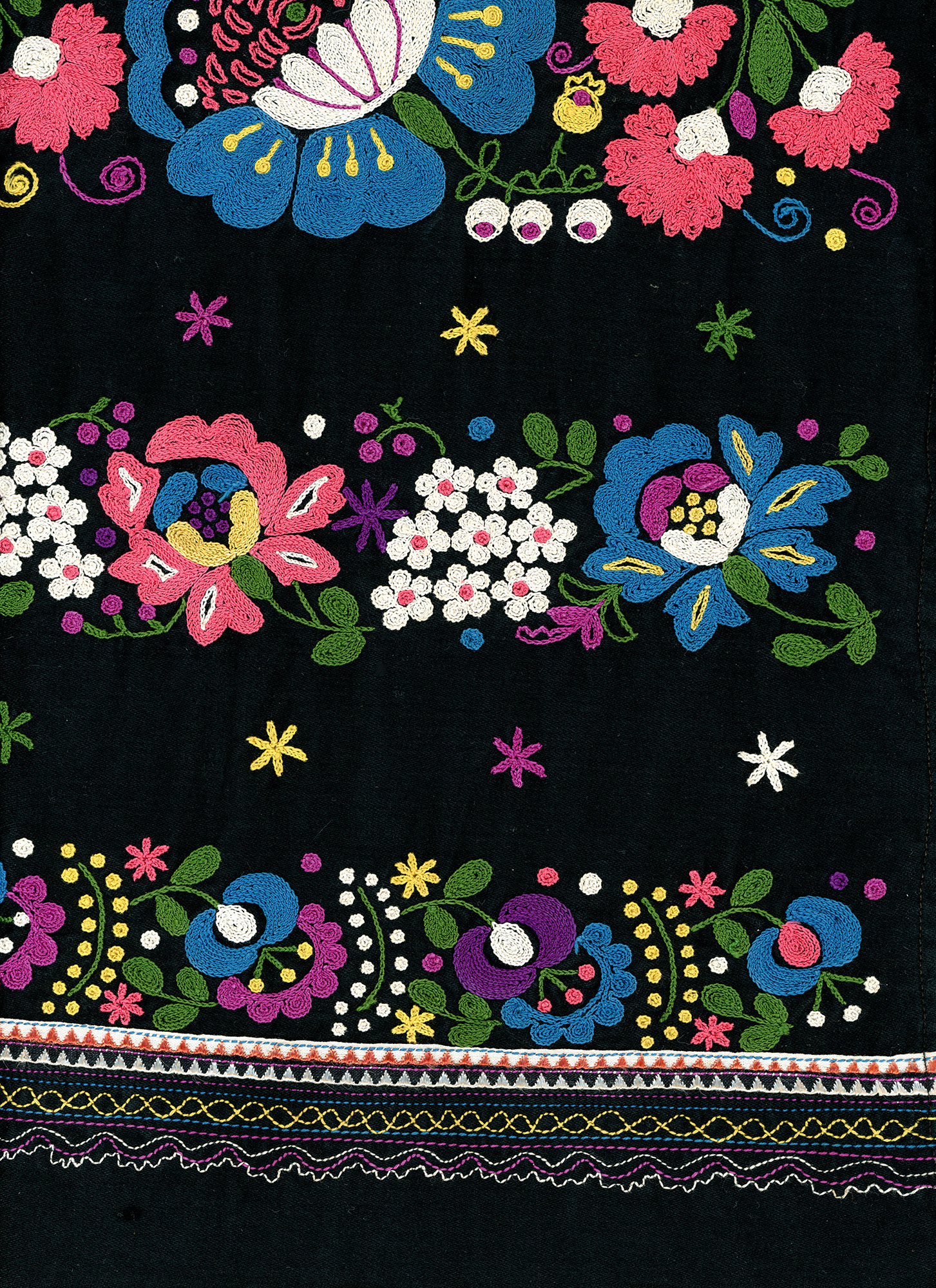 - Descripton - Mužská zástera z čierneho glotu je ušitá z jedného dielu látky. Šírka zástery je 67 cm, dĺžka 68 cm, strapce majú dĺžku 1 cm. Zásteru zdobí štepovanie strojom, výšivka „krivou ihlou“ a „krepindľa“ – ozdobná stuha našitá 10 cm od spodného okraja. - Note - detailný pohľad - Work owner - Sebíň, Štefan (1986) - Date of creation - 30. roky 20. storočia - Municipality of origin - Korytárky, okres Detva - Recorded by - Hronček, Lukáš (2000) - Other responsibility - Hronček, Lukáš (digitalizoval/-a)