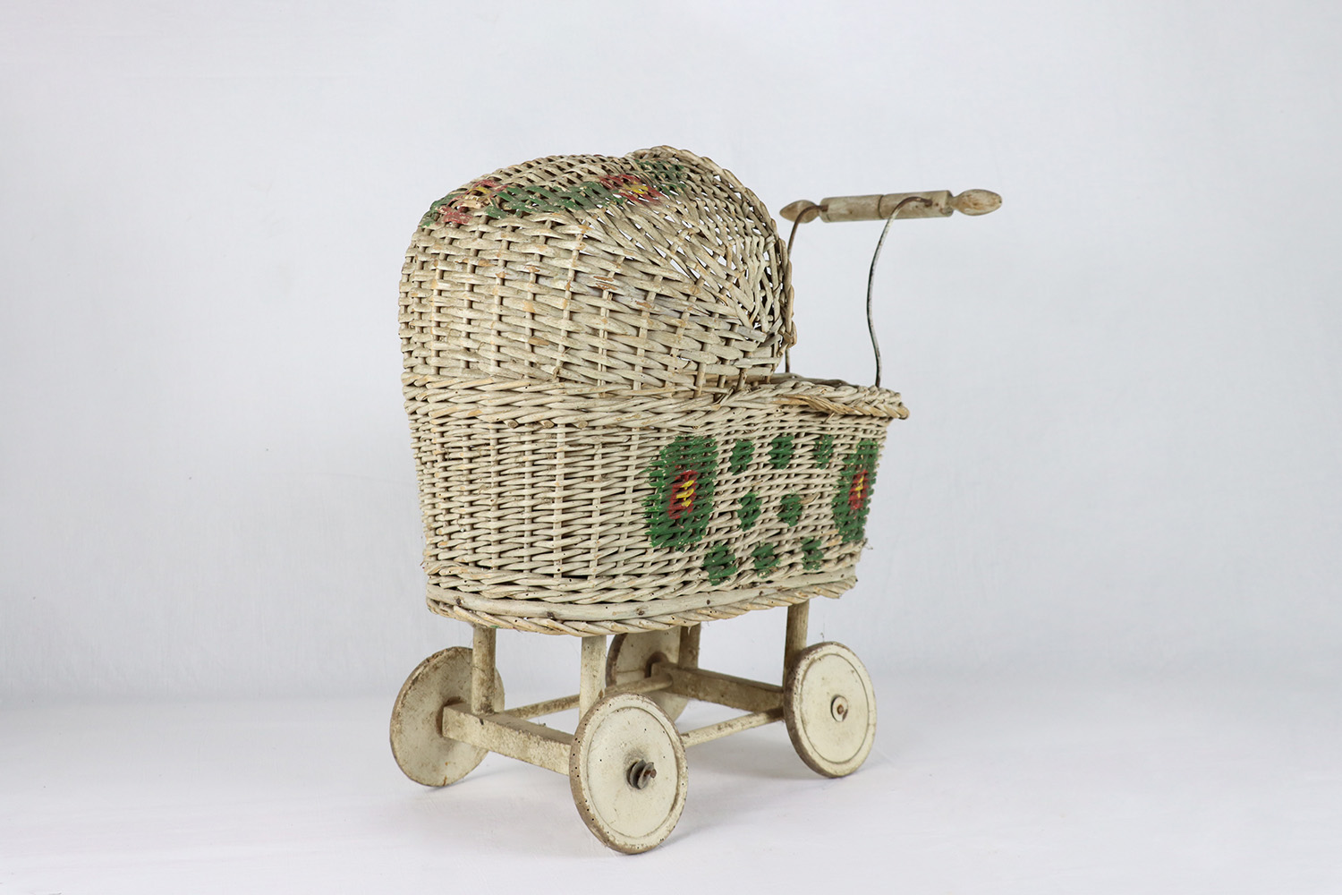 Descripton Detský prútený kočík s drevenými kolieskami je vysoký 56 cm, jeho šírka je 23 cm a dĺžka 52 cm. Drevená rukoväť je ku korbe kočiara prichytená kovovými tyčkami. Podvozok je vyrobený z dreva, kolieska sú pripevnené kovovými úchytkami. Predmet slúžil ako hračka. Note celkový pohľad Work owner Obec Sása Date of creation 40. roky 20. storočia Municipality of origin Sása, okres Zvolen Recorded by Hronček, Lukáš (2000) Other responsibility Hronček, Lukáš (digitalizoval/-a)