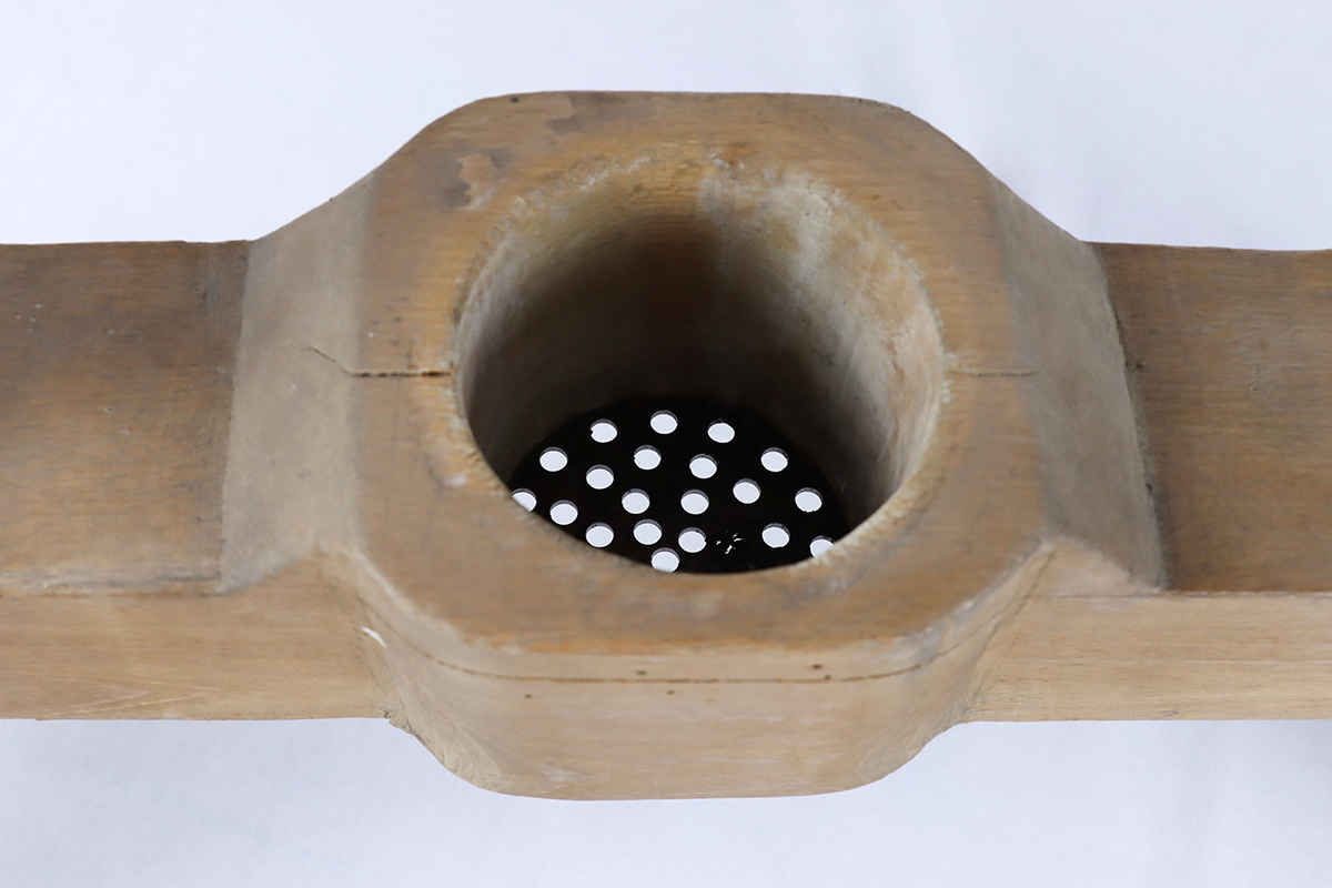 Popis Drevený pracovný nástroj na lisovanie (pretláčanie) varených zemiakov je 70 cm dlhý, 48 cm vysoký a priemer otvoru s kovovým sitkom je 8 cm. Predmet stojí na štyroch nožičkách. Do otvoru so sitkom sa vkladal varený zemiak. Pohyblivým dreveným piestom ho pretláčali do nádoby, ktorá sa umiestňovala pod sitko. Všeobecný popis Pretlačené zemiaky sa používali do rôznych jedál, najčastejšie do chlebového cesta. Poznámky detailný pohľad Majiteľ/-ka diela Kortán, Václav (1972) Dátum vzniku diela 1. polovica 20. storočia Obec pôvodu Jasenie, okres Brezno Autor/-ka záznamu Jágerová, Andrea (1973) Ďalšia zodpovednosť Hronček, Lukáš (digitalizoval/-a)