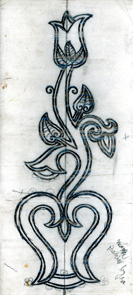 Pri zdobení fujár sa využívali rôzne geometricky štylizované kvetinové ornamenty. Často to bývali tulipány, ruže či rôzne lístky. Od druhej polovice 20. storočia sa používali aj figurálne ornamenty, rôzne pastierske scény, písané texty, mená a podobne. Vzory sa na nástroj predkresľovali ceruzkou cez kopírovací papier. Následne sa využívali viaceré techniky na zdobenie, napríklad hlboký dvojitý rez, vybíjanie ornamentov kovovými plieškami, rôzne druhy vodových či liehových moridiel na zvýraznenie línií kvetov a podobne. Po vyrezaní predkreslených vzorov sa nástroj leptal kyselinou do svetlohnedej, okrovej či oranžovej farby.Majiteľ/-ka diela Smutný, Pavel (1942) Dátum vzniku diela 70. roky 20. storočia Obec pôvodu Dúbravy, okres Detva Ďalšia zodpovednosť Černáková, Marcela (digitalizoval/-a)